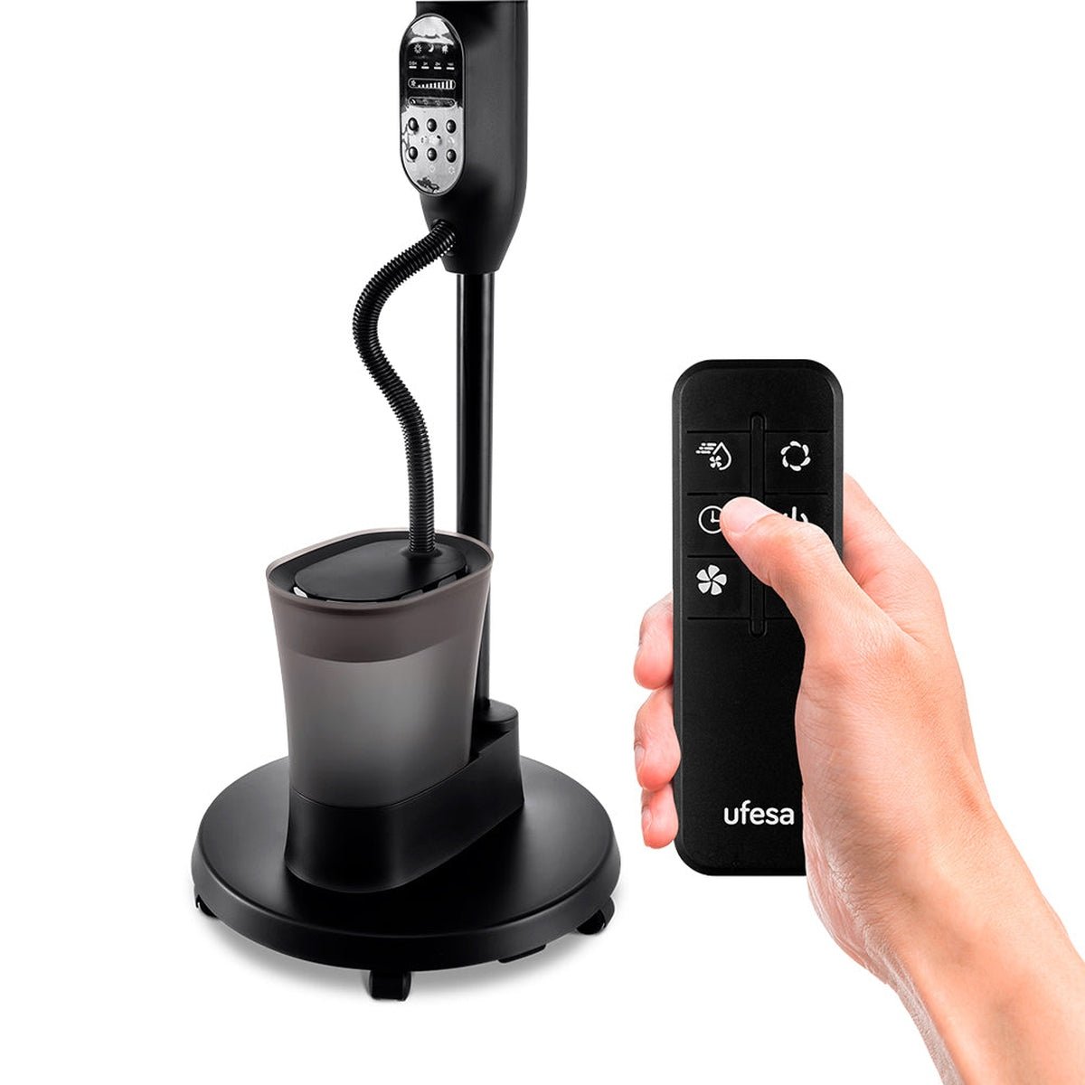 El volumen de niebla es ajustable en 3 niveles y su depósito de agua de 2.4 litros garantiza una nebulización continua sin interrupciones.